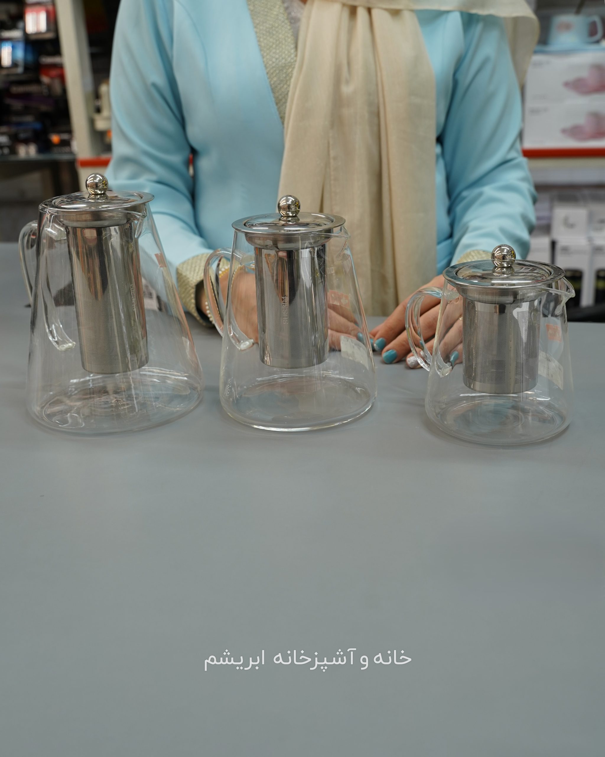 قوری پیرکس شعله مستقیم درب استیل ظرفیت 1350 سی سی