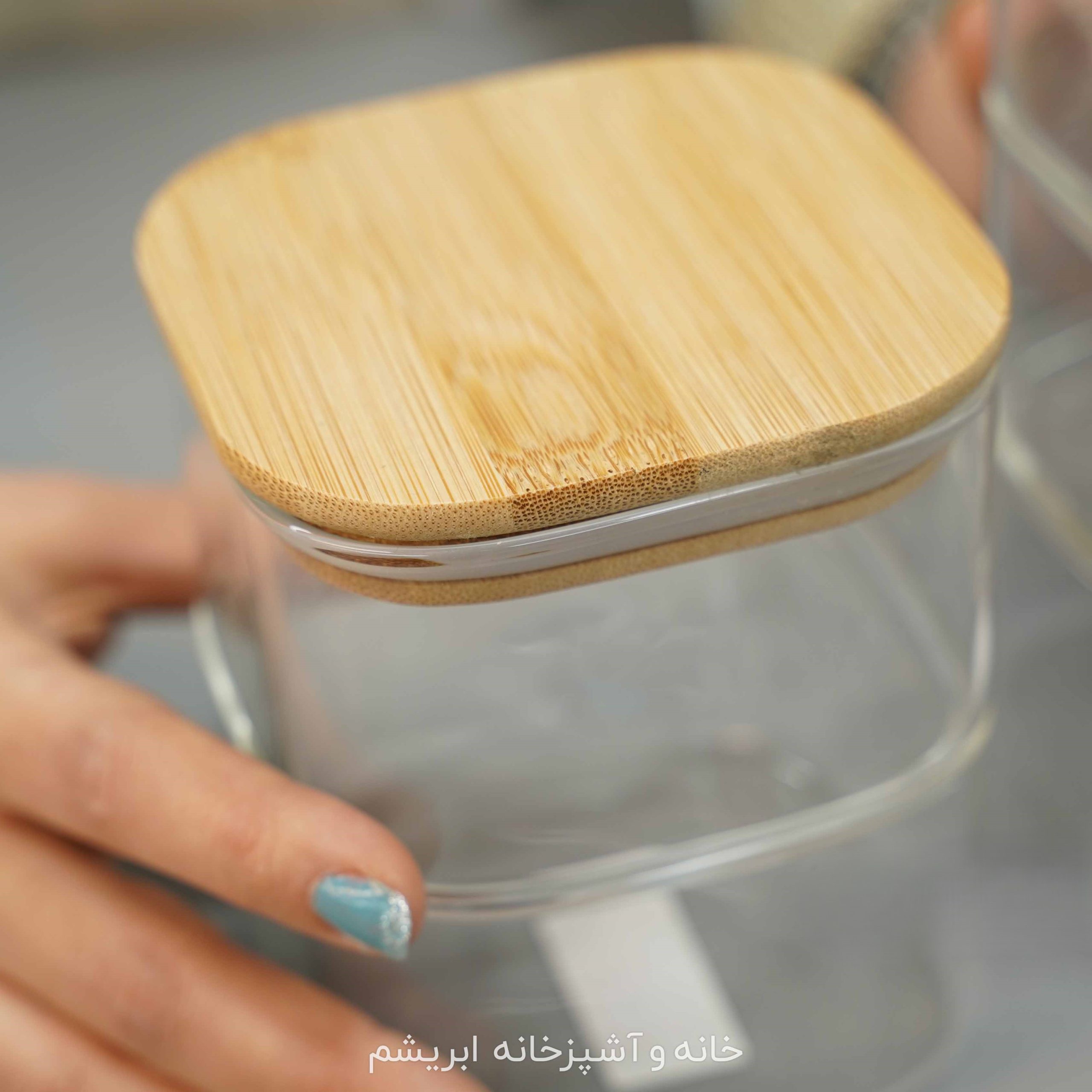 ظرف 2 طبقه پیرکس مربع درب بامبو 400ml